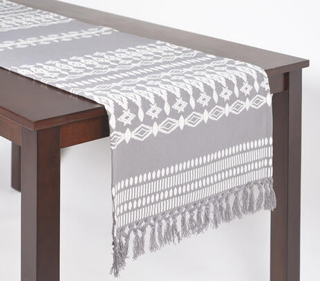 Embroidered Tasseled Cotton Table Runner – Artisan Dining Decor