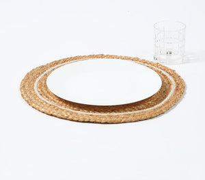 Give your table a natural, textural lift with Gleemium’s earth-friendly table placemat set, braided from locally-sourced jute. One of the most fascinating features of the hand braiding method is that the jute does not even touch the loom, let alone any powered machine! Three different jute yarns are meticulously interlaced by hand to form a beautiful braid. Jute offerings are known to be sturdy and durable. A favorite with environmentalists, jute is a plant fiber that is renewable, low-maintenance and very eco-friendly