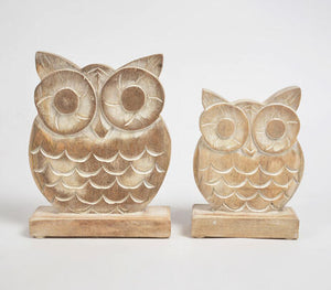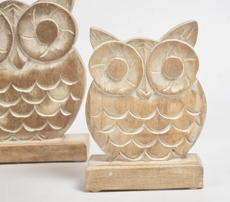 Thoughtfully designed andhandcarved with care, this set ofwooden owl decoratives brings a touch of farmhouse charm and quiet wisdom to your space. Crafted by skilled Indian artisans using simple lathes and sharp tools, each owl featuresfine detailing and a rustic white finish that highlights the natural beauty of wood.