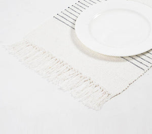 Gleemium brings to you this muted set of cotton placemats, handwoven to utter perfection by proficient craftspeople in North India. Simple yet urbane, they are ideal for minimalistic dining areas. The creation process may be unhurried as compared to its machine-made equivalent; however, the final product bears that unique artisanal punch of exclusivity! Handweaving is a craft to reckon with as it requires meticulous rhythm and coordination and often, bare feet to judge the yarn. Contributing to 95% of the world's handwoven fabrics, manual looms are an indispensable part of India and employ 4.4 million families across the subcontinent