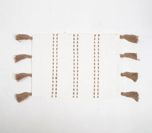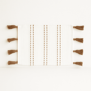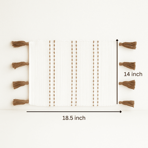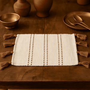 Soft, earthy, and effortlessly stylish — these cotton placemats are yourtable’s new best friend. Handwoven with care and finished with delicate tassels, they bring a relaxed,boho vibe to any meal, whetherit’s a quiet breakfast or a dinner party with mates.