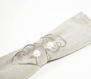 Add a touch of elegance to your table with these pearl napkin rings, handcrafted from stainless steel wire and finished with delicate pearl accents. Their heart-shaped coil design brings softness and charm to any setting — perfect for dinner parties, festive gatherings, or everyday meals that deserve a little sparkle.