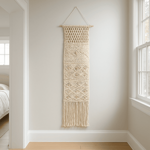 Looking for a stylish way to decorate your walland store small items? Thisboho macrame wall hanging withpocket is the perfect mix of beauty and function. Handmade by skilled artisans, it brings a cozy, earthy vibe to any room—whetherit’s your living room, bedroom, or entryway.