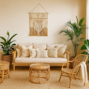 Afringe wall hanging that softens your space with texture and calm. Bring warmth and flow to your walls with ourCotton Fringed Wall Hanging, a handwoven piece that celebrates natural fibres and slow craft. With its long, layered fringe in earthy tones, this wall hanging feels both grounding and effortlessly stylish—perfect for Australian homes that love a touch of boho charm.