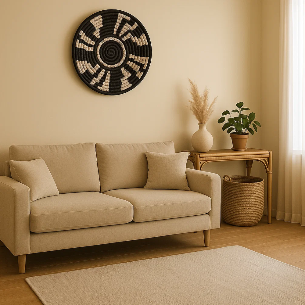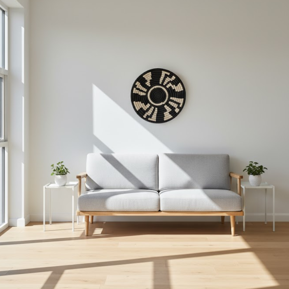 Add bold character to your interiors with thisMonochrome Tribal Wall Plate, a handcrafted piece that blendstraditional weaving techniques with modern minimalism.