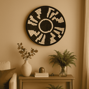 Monochrome Tribal Wall Plate – Handcrafted Boho Wall Decor