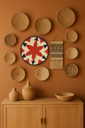 Tribal Star Wall Plate – Handwoven Round Boho Wall Art