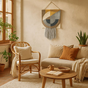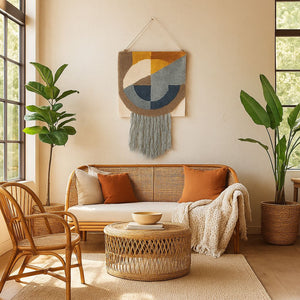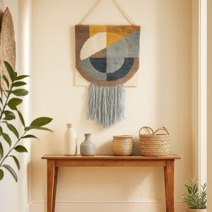 A woolen wall hanging that adds rhythm, warmth, and handcrafted soul to your space.Bring texture and movement to your walls with ourTufted Abstract Fringed Wall Hanging—a tactile piece made from natural wool and cotton, handwoven and tufted by skilled artisans in India. Designed for Australian homes that celebrate slow craft and expressive design, this hanging blends softness with sculptural charm.