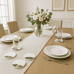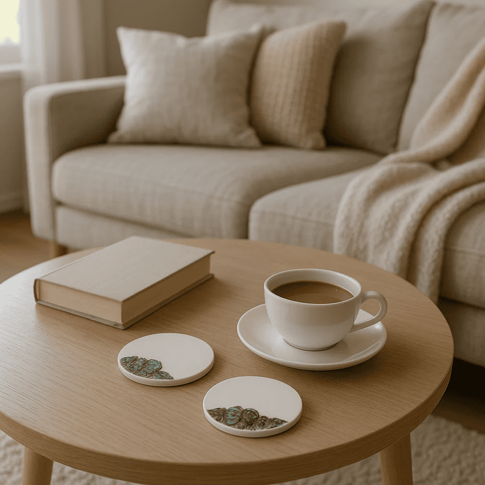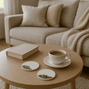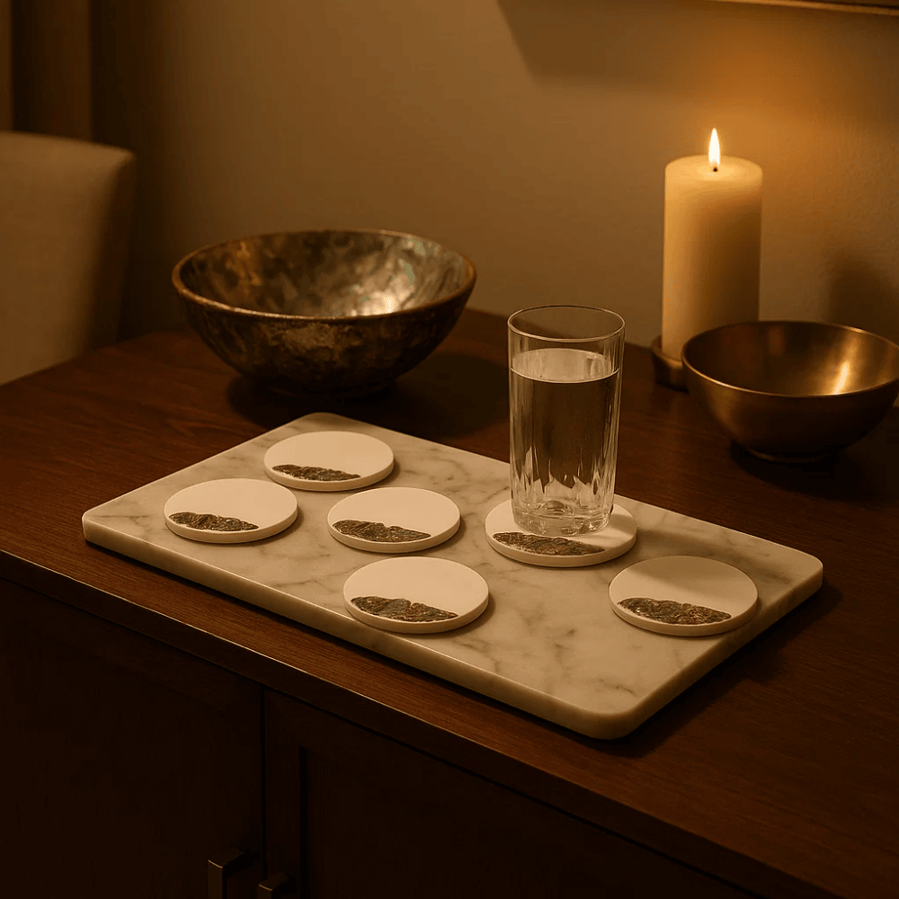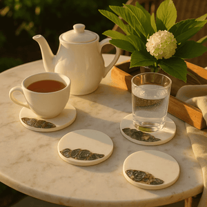 The inlay process is done entirely by hand, requiring precision, patience, and a deep understanding of materials. These coastersaren’t just functional—they’re miniature works of art. Whether you're hosting guests or enjoying a quiet cuppa, they protect your surfaces while adding a refined, soulful touch to your space.