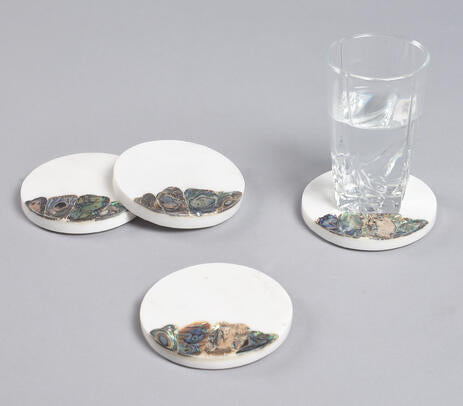 Where coastal shimmer meets timeless stone. Elevate your table setting with ourAbalone Shell Inlaid Marble Coasters—a handcrafted set that blends natural luxury with artisan skill. Each coaster is carved from solid white marble and delicately inlaid with shimmering abalone shell, creating a subtle iridescent glow that catches the light and adds a touch of coastal charm.