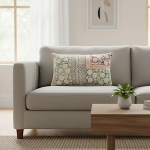 Add artisanal elegance to your interiors with thisblock printed cotton geometric botanical lumbar cushion cover, a handcrafted piece that blendsheritage block printing with modern design. Made from100% cotton, thislumbar cotton cushion cover features a soothing geometric-botanical motif, offering both comfort and style.