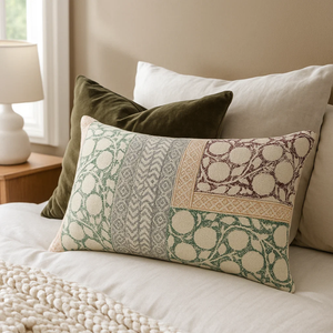 ✨ Refresh your interiors with thisblock printed lumbar cotton cushion cover — a handcrafted piece that blends tradition, artistry, and modern style.