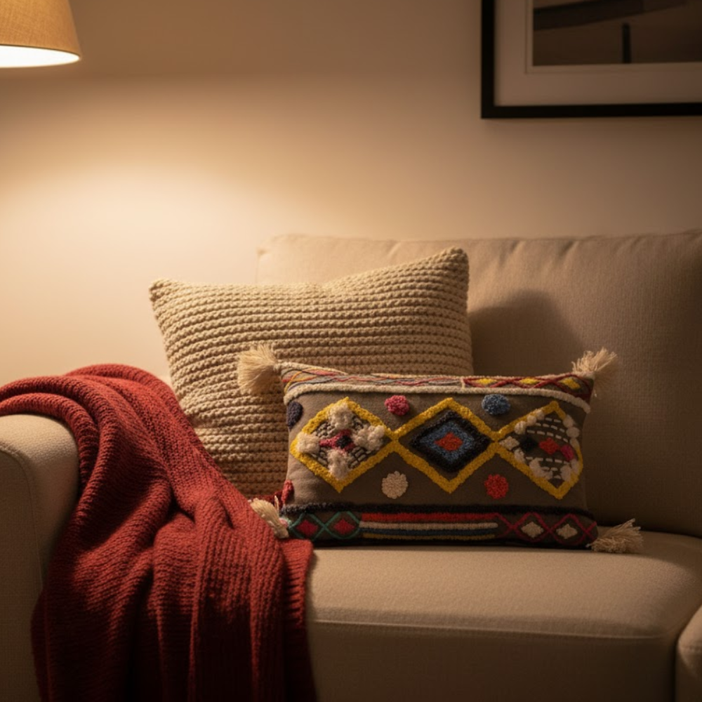 Because it’s handmade,minor variations in embroidery, colour, and finish are natural, making everycushion cover unique.