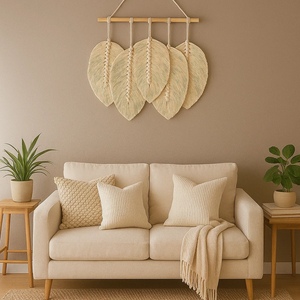 Feathered Macrame Leaf Wall Hanging – Handmade Boho Cotton Wall Décor