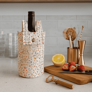 Wrap your wine in warmth and whimsy — thiswine bottle bag is handcrafted from soft cotton fabric and finished with a delicate floral print that feels both festive and refined. Designed for gifting, hosting, or styling your bar cart,it’s a reusable alternative to paper gift wrap that adds charm and intention to every bottle.