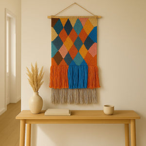 Geometric Fringed Wall Hanging – Boho Textile Wall Art Decor