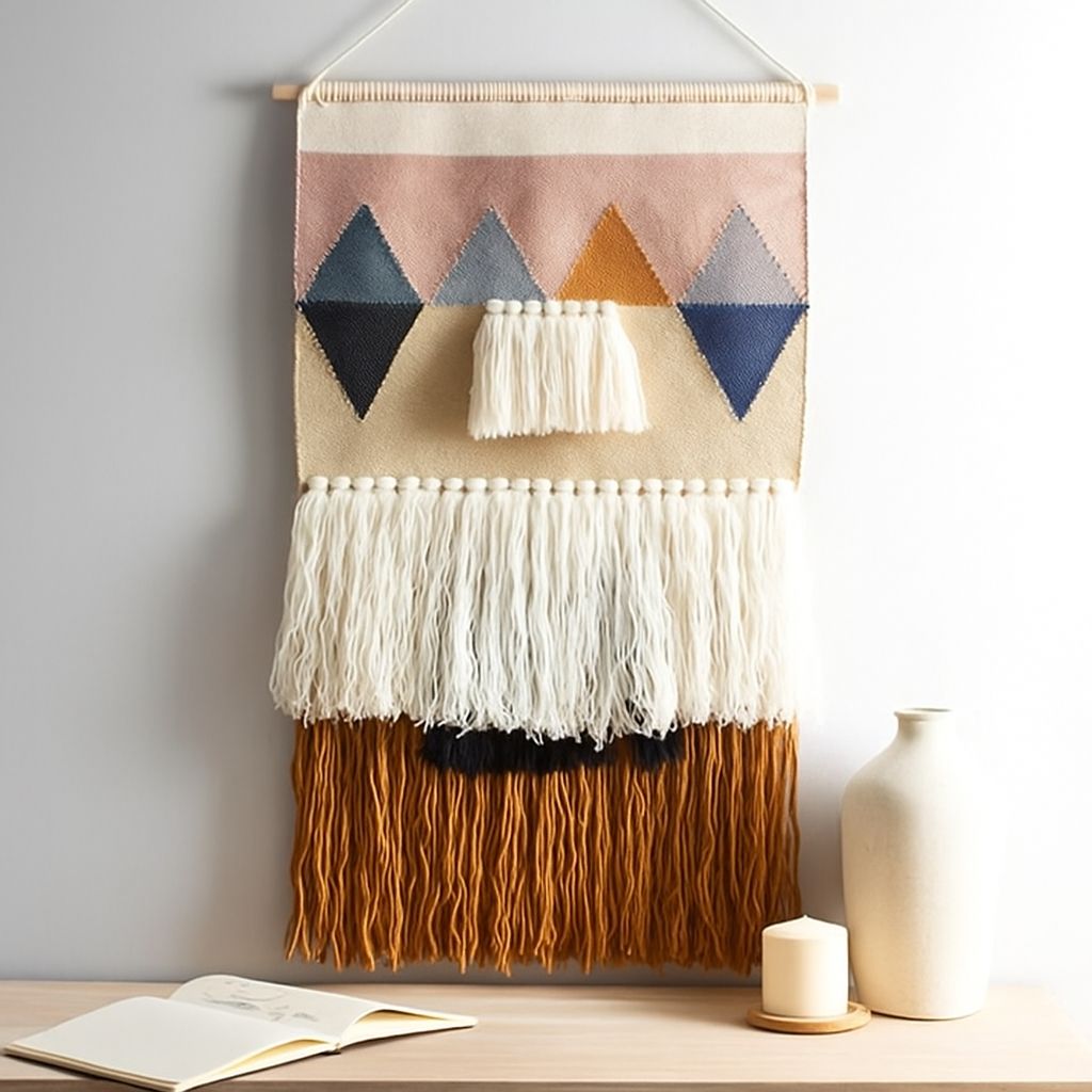 Handwoven & Tufted Geometric Wall Hanging – Boho wall Decor