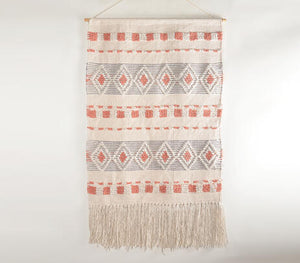 Handwoven Wool & Cotton Geometric Terra Fringed – Wall Hanging