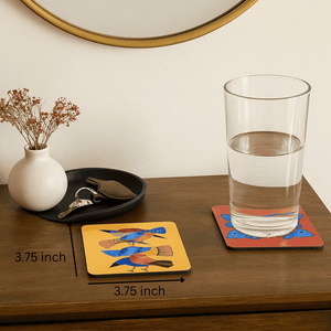 Bold, beautiful, and rich in heritage — this set oflaser cut MDF coasters brings the timeless charm of Madhubani art to your everyday table. Crafted using precision laser cutting and heat transfer printing, each coaster features a vibrant fish motif inspired by traditional Indian folklore. Though made with modern techniques, the design carries an old-world soul that adds depth and story to your space.