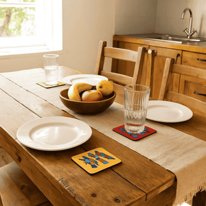 These aren’t justcoasters —they’re miniature canvases of culture, care, and craft. A quiet statement that turns everyday sipping into something meaningful.