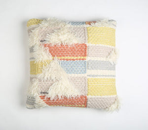 Soft Pastels, Rich TextureThiswool & cotton cushion cover is handwoven by artisans using traditional looms and natural yarns. The pastel tones and wool accents give it a cozy, layered lookthat’s perfect for any room.