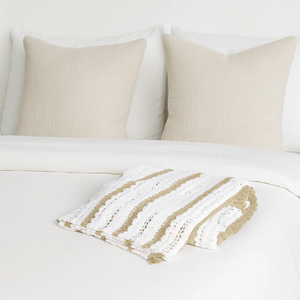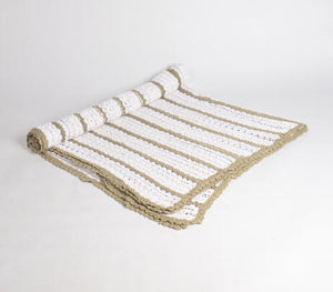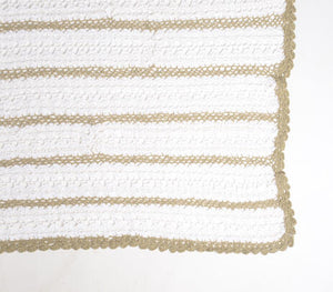 Striped Crochet Throw – Handmade White Cotton Comfort